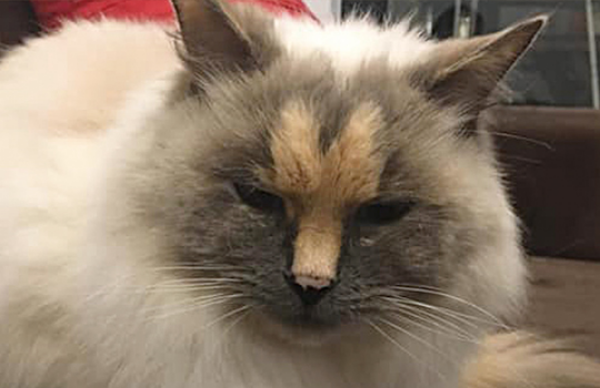 코 주변의 색깔만 옅은 갈색인 고양이의 사진입니다.